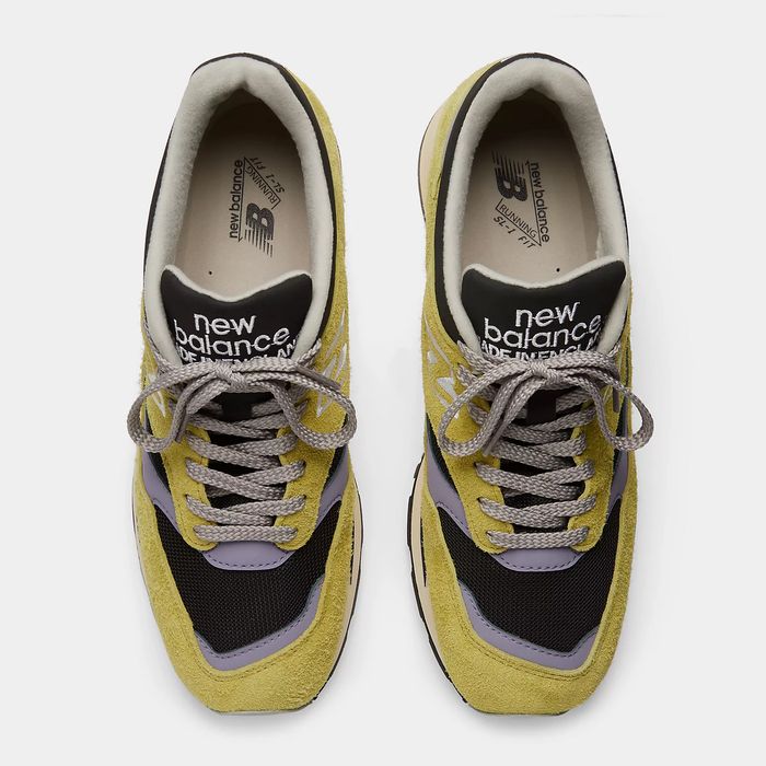 重厚な佇まいを英国ならではの上質なスウェード&メッシュのコンビアッパー素材で包み込み、シュータンにはMade in Englandの刺繍、カラーはグリーンオアシス、ブラック、ライトパープルの組み合わせで仕上げている。