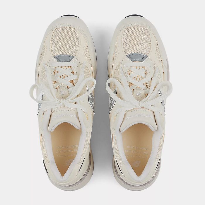 伝説的なMade in USA 992が、Made in USAシーズナルコレクションに初登場。この人気シルエットがエレガントでミニマルなスタイルを特徴としています。クラシックなスエードとメッシュの素材に、カルシウムとローカシューのホワイトトーンが調和した、洗練されたデザインです。