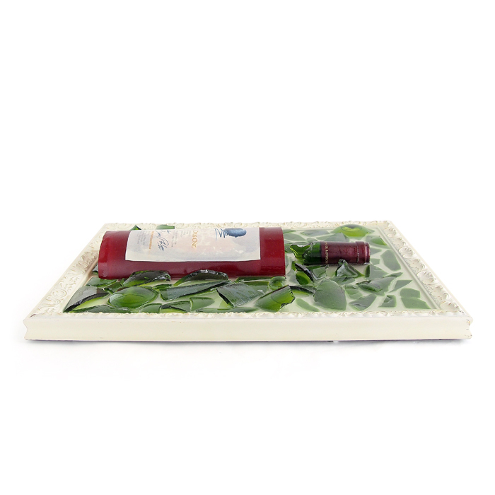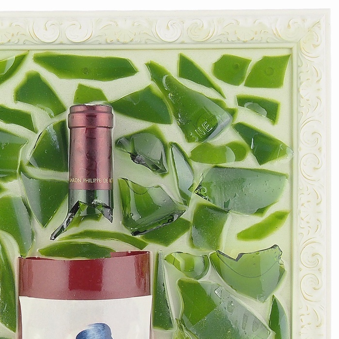 岡山県在住のアーティストにより制作された、アメリカの高級赤ワインの瓶を利用したアートフレーム。