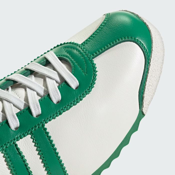 60年代のスピリットとイタリアの靴作りのエレガンスを、普段のスタイルに採り入れよう。これは、1959年にローマで作られたアスレチックシューズを、ラグジュアリーな雰囲気に蘇らせたモデル。滑らかで、わずかにシボのあるレザーアッパーが、ビンテージな雰囲気を漂わせる。レザーライニング、ラバーアウトソール、"adidas Italia"のメタリックカラーのロゴで、デザインをシックにまとめたシューズ。