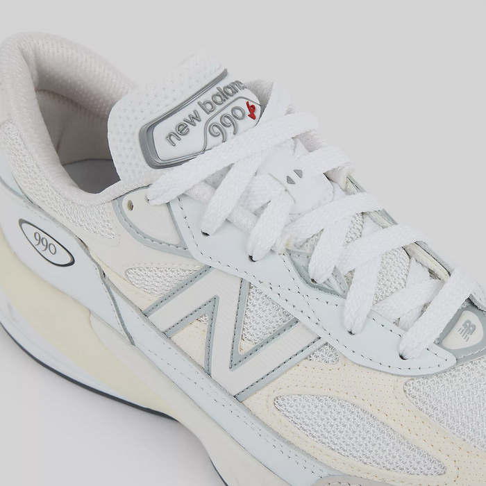しかし、最大の進化は内部にあります。FuelCellミッドソールクッショニングの追加により、990の進化は目に見えるだけでなく、実感できます。Made in USA シーズナルコレクションの一部であるこのアップデートされたシルエットは、メッシュアッパーとレザーオーバーレイを特徴とし、ミニマルなホワイトアウトカラー(ホワイトとシーソルト)を採用しています。