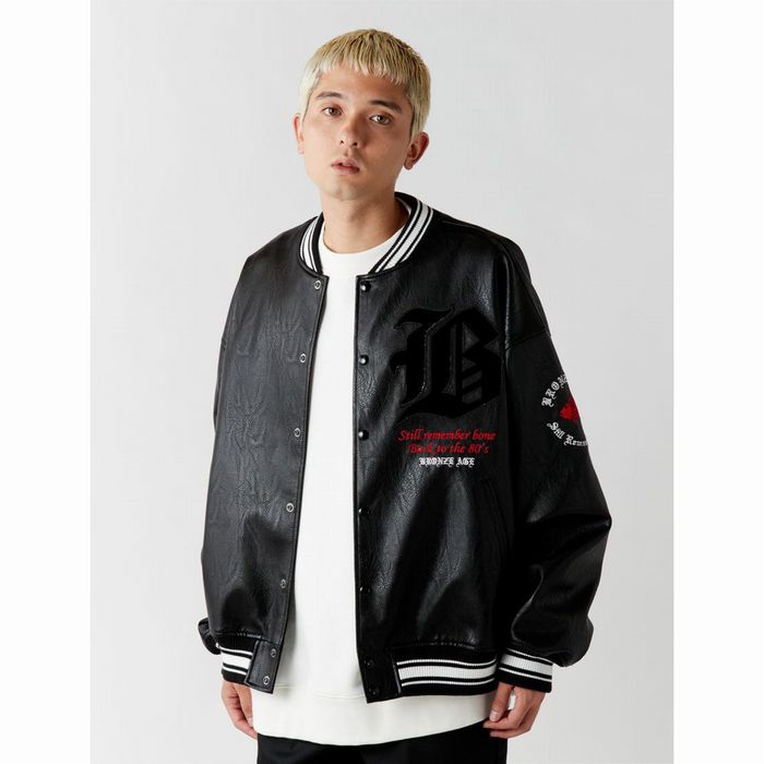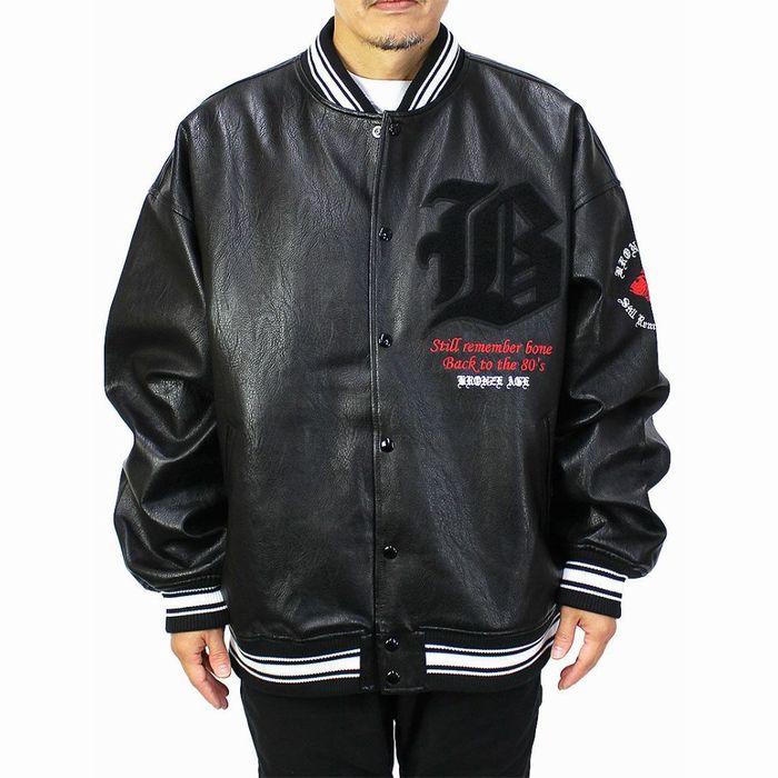 - > BRONZE AGE Faux Leather Stadium Jacket