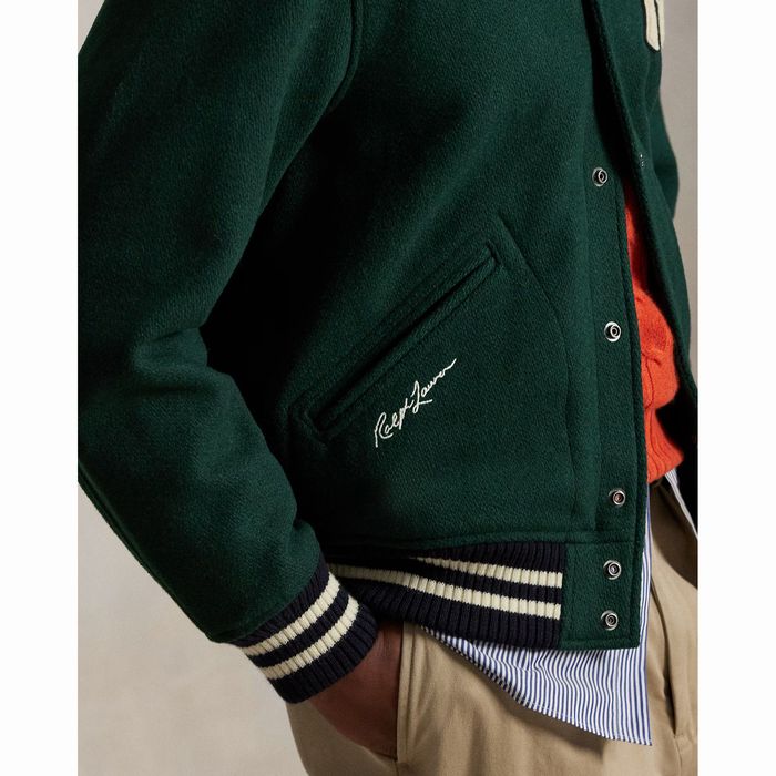 ・背中中央に「Ralph Lauren」の文字を綴ったシェニールパッチ。ストライプ入りリブニットの裾。総裏地付き。