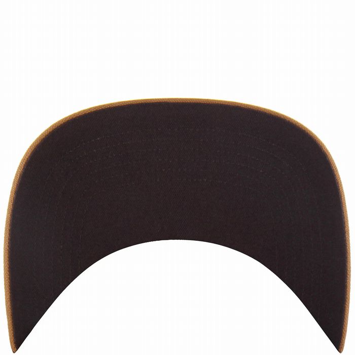 Carharttの定番ダック生地を使用した、47 BRANDを代表するスナップバックキャップです。刺繍ロゴ、真鍮製アイレット、ブラウンのアンダーバイザー、サイズ調整可能なスナップクロージャーを備え、背面にはアイコニックなCarharttロゴがあしらわれています。