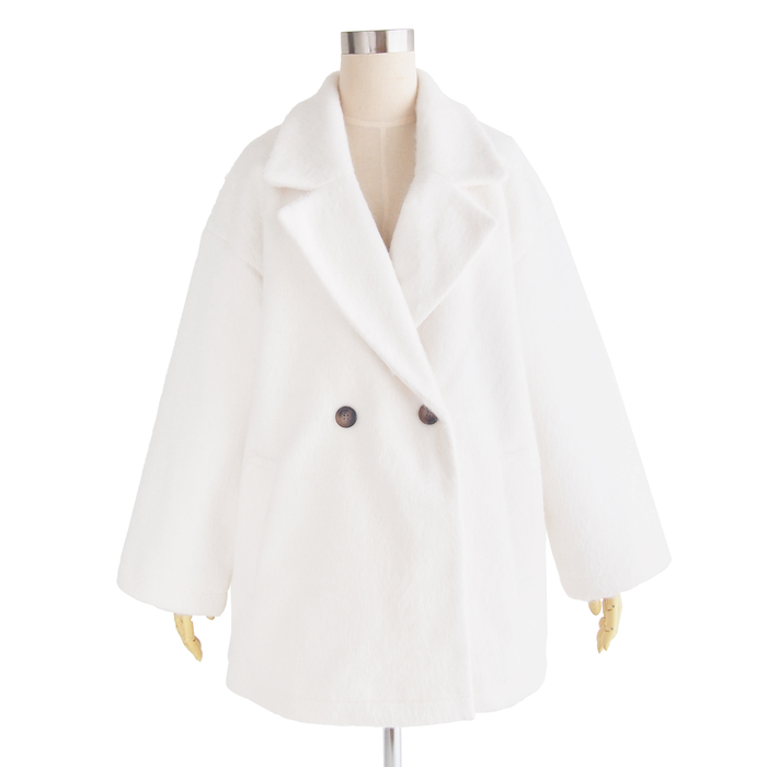 ふくらみ感のある表面を起毛させた上品な素材感のジャケット型コート。