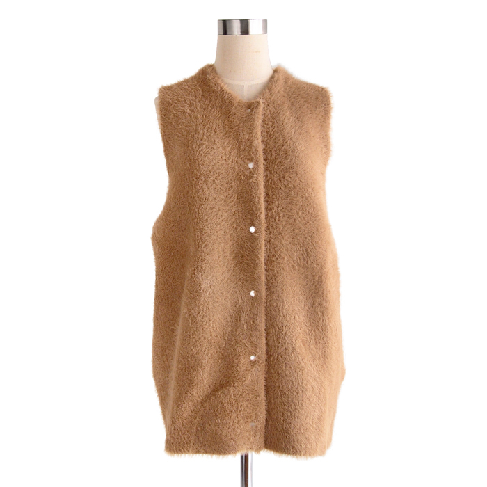 Double-face feather knit long vest【ダブルフェイスフェザーニットロングベスト】