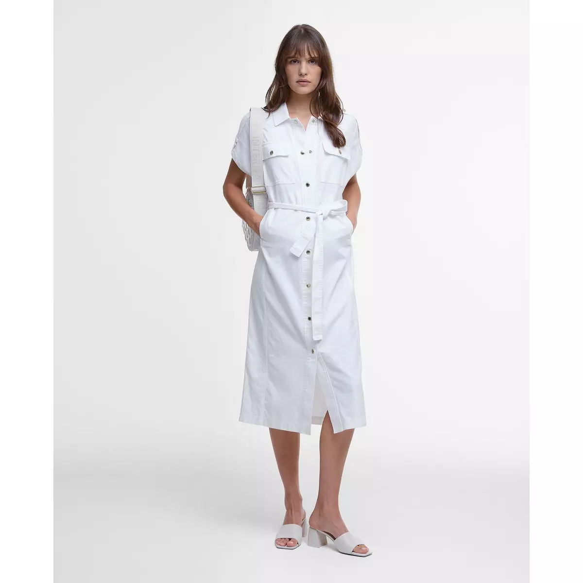 リネン混紡素材のハーロウミディドレスは、快適さとスタイルを兼ね備え、あらゆるシーンで活躍します。