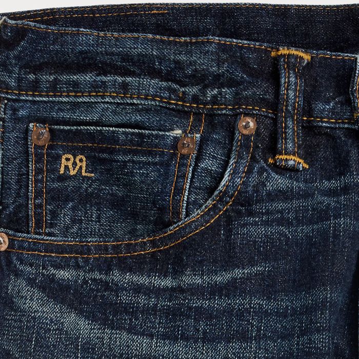 ・米国製のボタン、リベット、ワッシャーバー / 5つポケットスタイル / コインポケットに"RRL"の刺繍 / ツイルのポケット裏地。